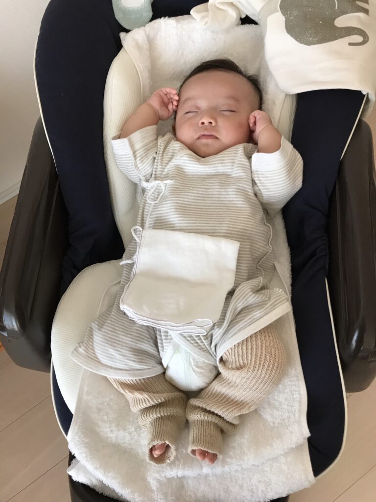 抱っこ紐・ベビーカー・チャイルドシートなどのお散歩アイテムは、生後1ヶ月まではお出かけできないので、ライフスタイルに合わせたものを後で探せば十分です!